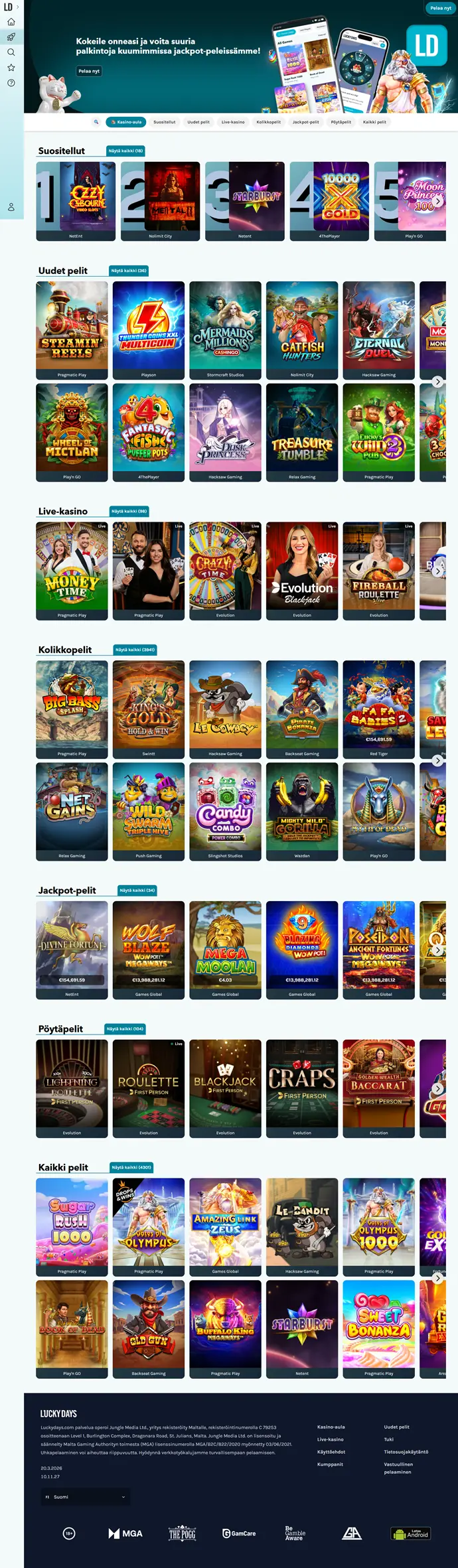 Lucky Days says it already offers more than 1,000 games across slots, table games, live casino, and jackpots.