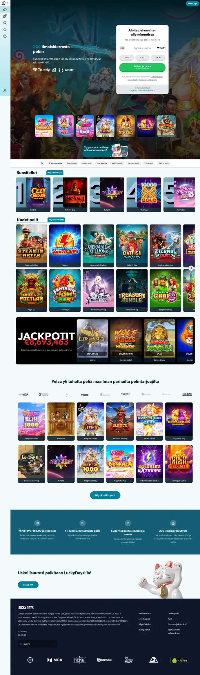 Lucky Days highlights a catalogue of more than 1,000 games. The figure is immediately striking. It gives the platform real scale and helps establish the idea of an offer that is already well stocked at the start of 2020. Slots, table games, live casino, jackpots: the foundation is broad, varied, and already able to appeal to several player profiles. That depth gives Lucky Days genuine room to play with. It also shows that the operator is entering the market with a clear ambition and an already rich product.