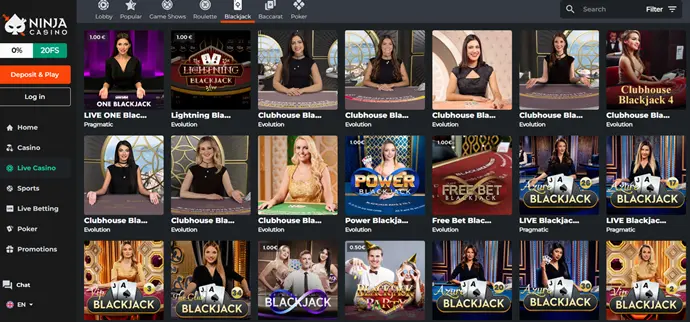The Ninja Casino Live offering is mainly based on iconic table games such as NetEnt Live Roulette and NetEnt Live Blackjack.