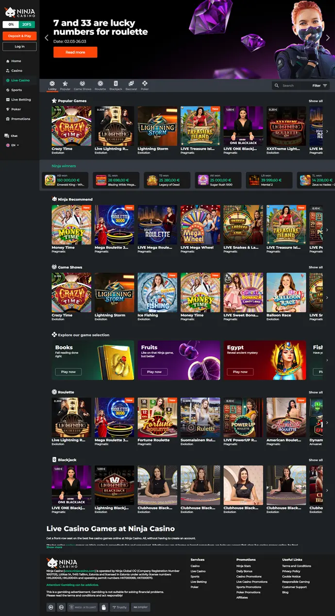 With Ninja Casino Live, the operator seeks to extend this logic into the world of live casino. The objective is not only to add additional tables, but to offer an experience capable of capturing the attention of players from the moment they arrive in the virtual casino.