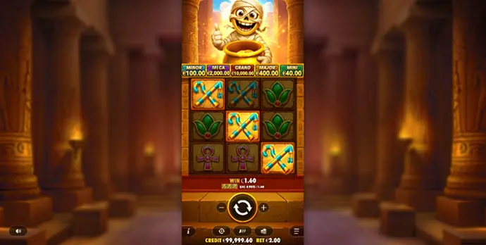 I also felt a sense of constant accompaniment. The presence of the mummy Tut, with his exaggerated reactions, strange smile, and contagious energy, plays an essential role. He does not minimize losses, but he celebrates every small win with you. This presence transforms the session into something more human, almost warm, even during the quieter phases.