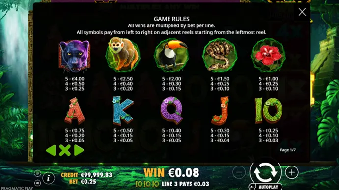 This setting is therefore not a simple visual dressing. It conditions the way the game is played. It invites you to slow down, to observe, to accept that the jungle does not reveal itself immediately. And it is precisely this restraint that makes you want to stay for a few more spins, simply to see what the territory is willing to show.