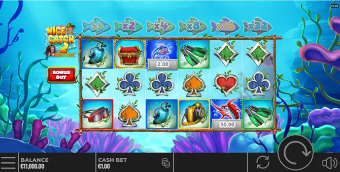He pulls up vibrantly colored fish, rare and majestic specimens. He seems to know the secrets of the ocean depths, and on the five reels of Nice Catch DoubleMax™, he becomes your guide. Each spin is an immersive plunge into an ocean of surprises. The fish, key symbols in the game, unlock features that bring you closer to your goals: generous multipliers, free spins, and cascading wins.