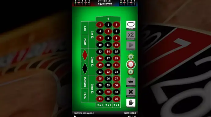 The vivid green background, the numbers arranged in narrow columns, the buttons placed on the right-hand side, and the compact structure of the table all create a very different sensation. This vertical roulette feels designed for players who want a fast, concentrated experience. Everything seems tighter, like a well-dressed pocket roulette. It may appeal to readers who often browse on smartphones and appreciate a presentation optimised for vertical use rather than a classic table forced into a smaller screen.