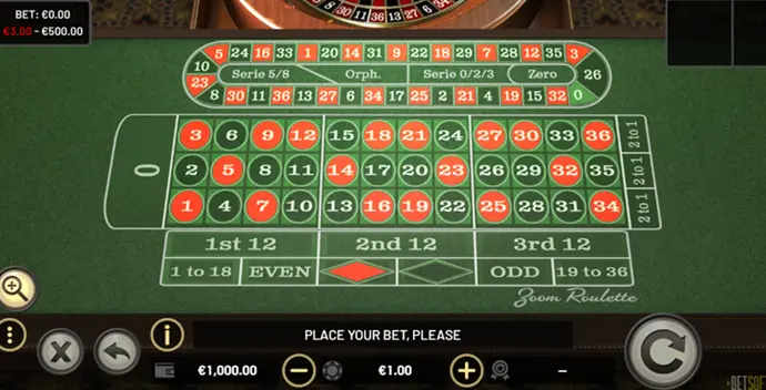 Zoom Roulette by Betsoft has an aesthetic that feels closer to the traditional casino. You will find the green layout, the visible wheel at the top, and an interface placed inside a softer, more subdued environment. The whole thing breathes a kind of comfortable classicism. With Zoom Roulette, you sense less of Betsoft Gaming trying to dazzle the player and more of an effort to recreate a familiar table in a readable, welcoming setting.